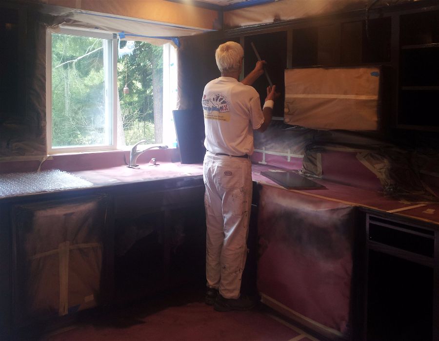 Not only did he do the painting, he also did some finishing work the carpenter left undone. By doing so the
